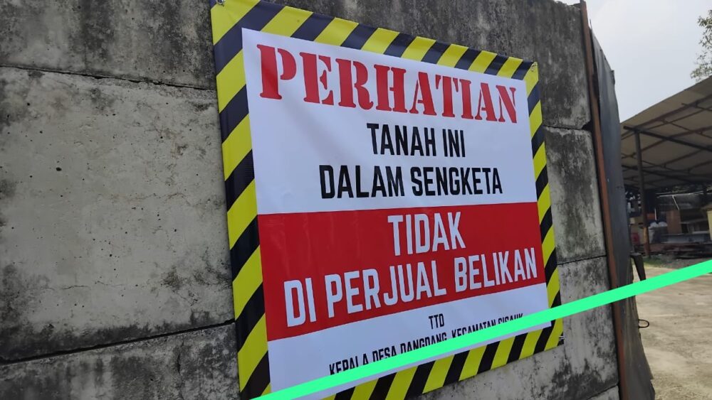 Menurut Suhud, oknum Kades berinisial S itu dinilai tak faham sehingga ia memasang spanduk yang bertuliskan “Perhatian Tanah ini Dalam Sengketa Tidak di Perjual Belikan” spanduk tersebut TTD Kades Dangdang Kecamatan Cisauk.