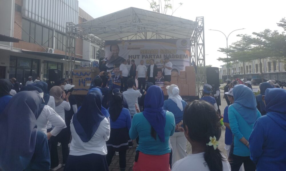 Suarageram.co – Dalam rangka memperingati Hari Ulang Tahun (HUT) ke-14 Partai NasDem, Dewan Pimpinan Daerah (DPD) Partai NasDem Kabupaten Tangerang menggelar acara syukuran yang berlangsung di Kantor DPD Partai NasDem Kabupaten Tangerang, Ruko Bizstreet Villagio Citra Raya Blok WF 09/5, Desa Ciakar, Kecamatan Panongan, Minggu (9/11/2025).